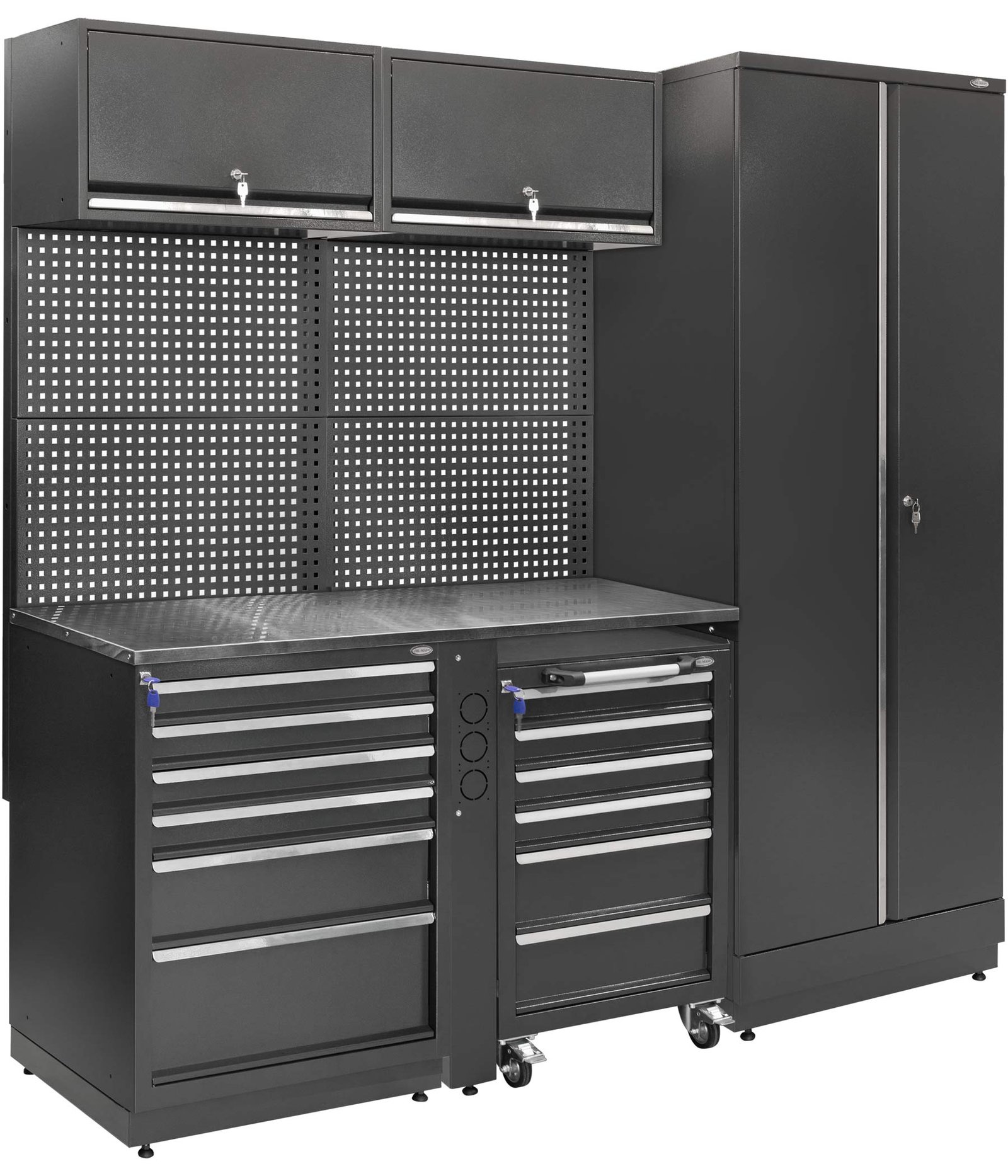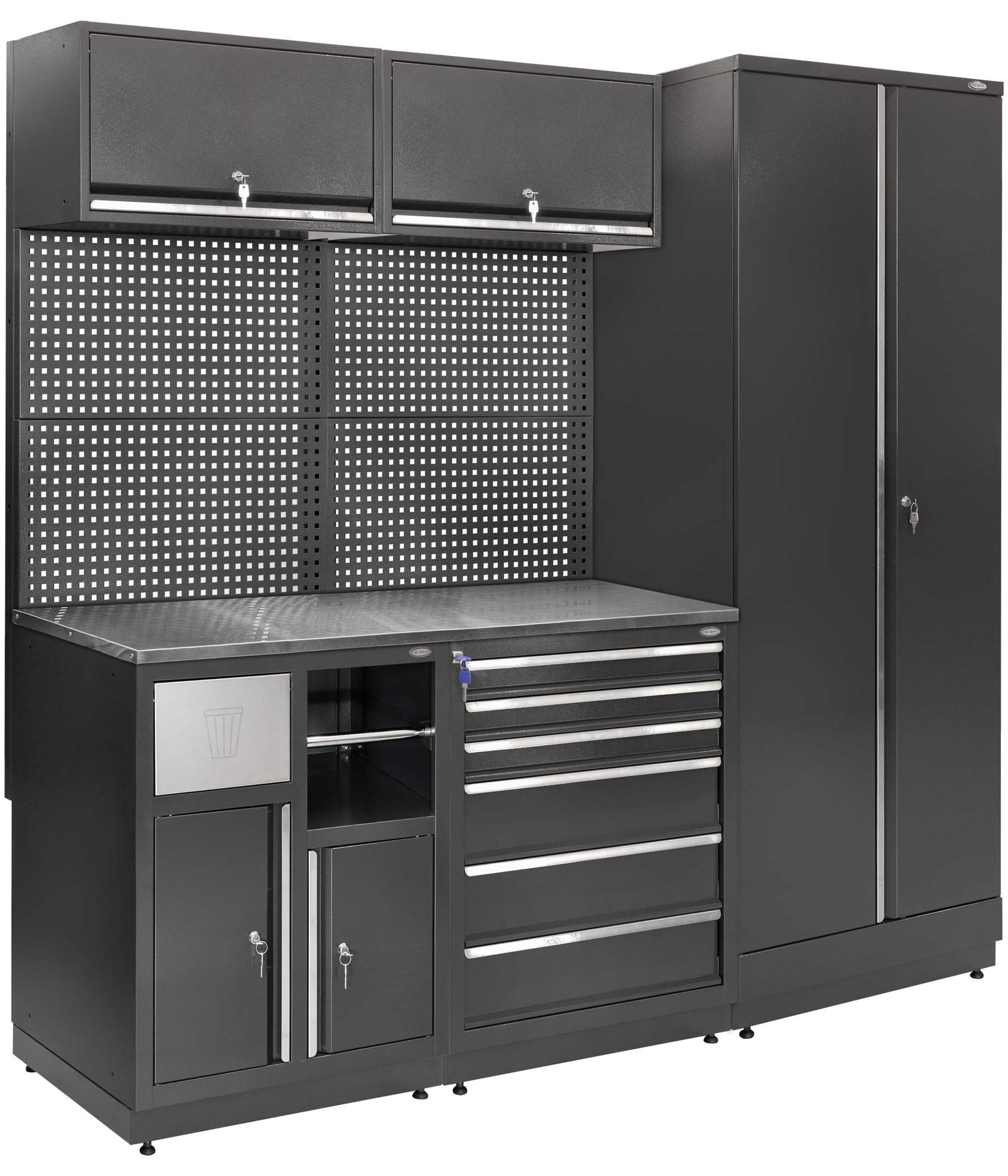 Sturdy and functional workbenches can be used in the garage, workshop or anywhere else where you need to set up a comfortable and suitable workplace. The workbenches are stable, depending on the model there is enough space to put the most necessary tools or devices, so the work goes smoothly and quickly. Mobile workstations is an alternative when the workplace needs to be moved or is not used all the time, then this solution provides an opportunity to efficiently use the space in the premises.