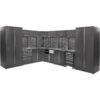 Modulinė kampinė dirbtuvių sistema MODUL K-08-001 – tai profesionali, tvirta ir ilgalaikė darbo vietos įranga, sukurta efektyviam įrankių laikymui ir kokybiškam darbui garaže, dirbtuvėse ar servise. Ši metalinė kampinė darbo sistema sujungia erdvias įrankių spintas, gilias stalčių spinteles, perforuotas sieneles įrankiams ir tvirtą nerūdijančio plieno stalviršį, kuris užtikrina patogią ir stabilią darbo zoną.