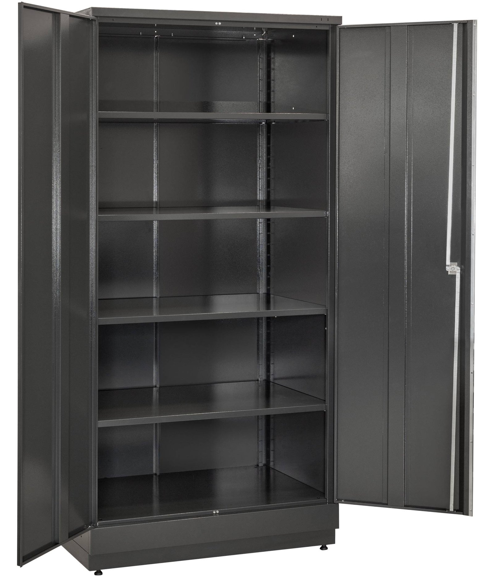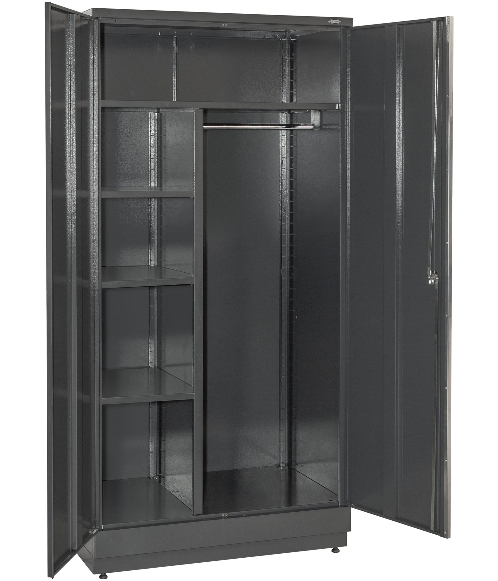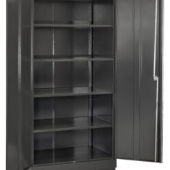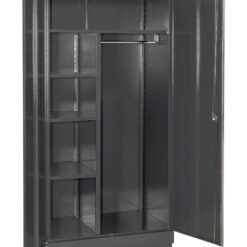 2 aukštos metalinės spintos su užraktais – puikiai tinka drėgmės jautriems įrankiams, elektrinei įrangai ir stambesniems prietaisams laikyti.
