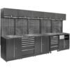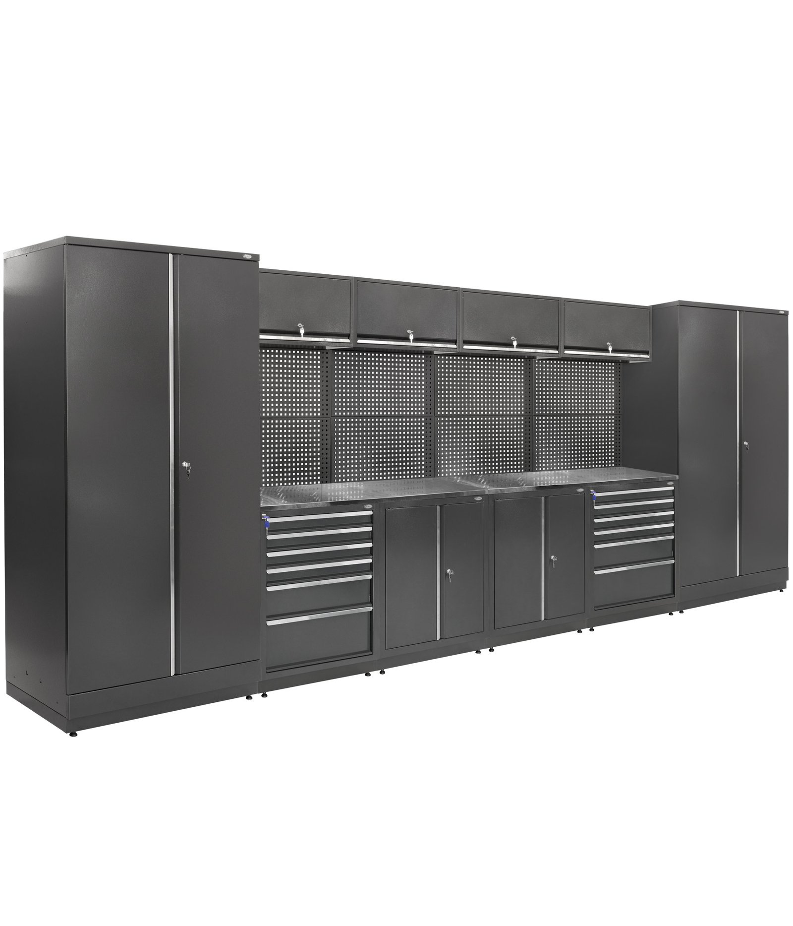 Viso komplekto nugarinę dalį dengia perforuotos sienelės, leidžiančios patogiai išdėstyti rankinius įrankius, laikiklius, kabliukus ir organizatorius. Tai padeda sutaupyti laiko ir išlaikyti tvarką darbo metu.