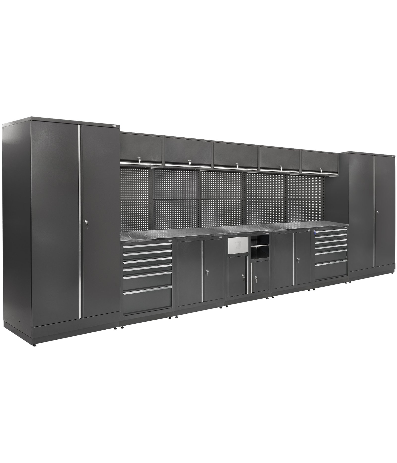 Modulinė garažo baldų sistema L-07-001 – tai aukščiausios kokybės, profesionalams skirta darbo vietos įranga, kurioje suderintas tvirtumas, talpumas ir ergonomiškas dizainas. Šis komplektas idealiai tinka autoservisams, dirbtuvėms, garažams, pramoninėms patalpoms ar namų meistrams, ieškantiems ilgaamžio ir universalaus sprendimo.